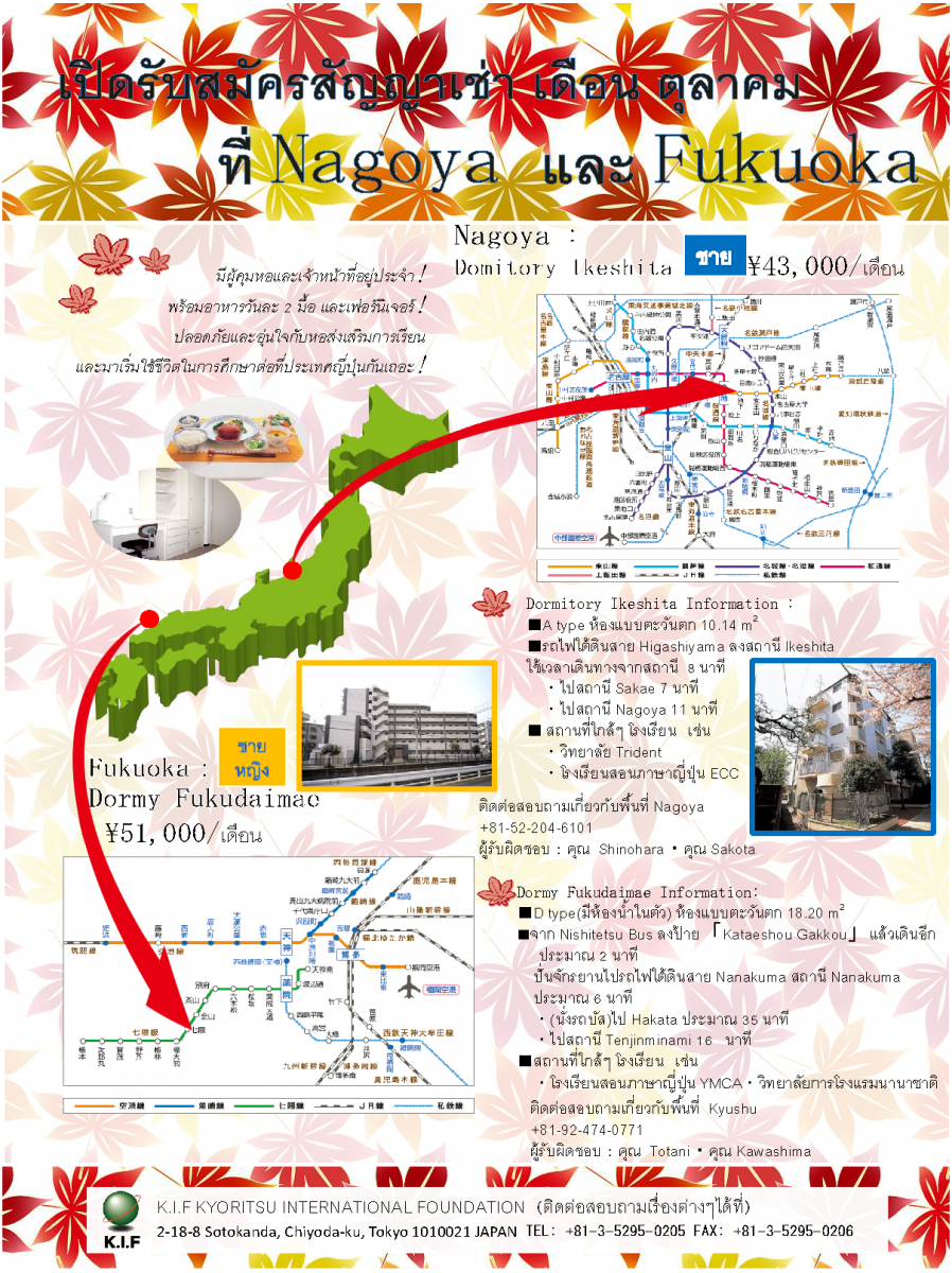 เปิดรับสมัครสัญญาเช่า เดือน ตุลาคม ที่ Nagoya และ Fukuoka