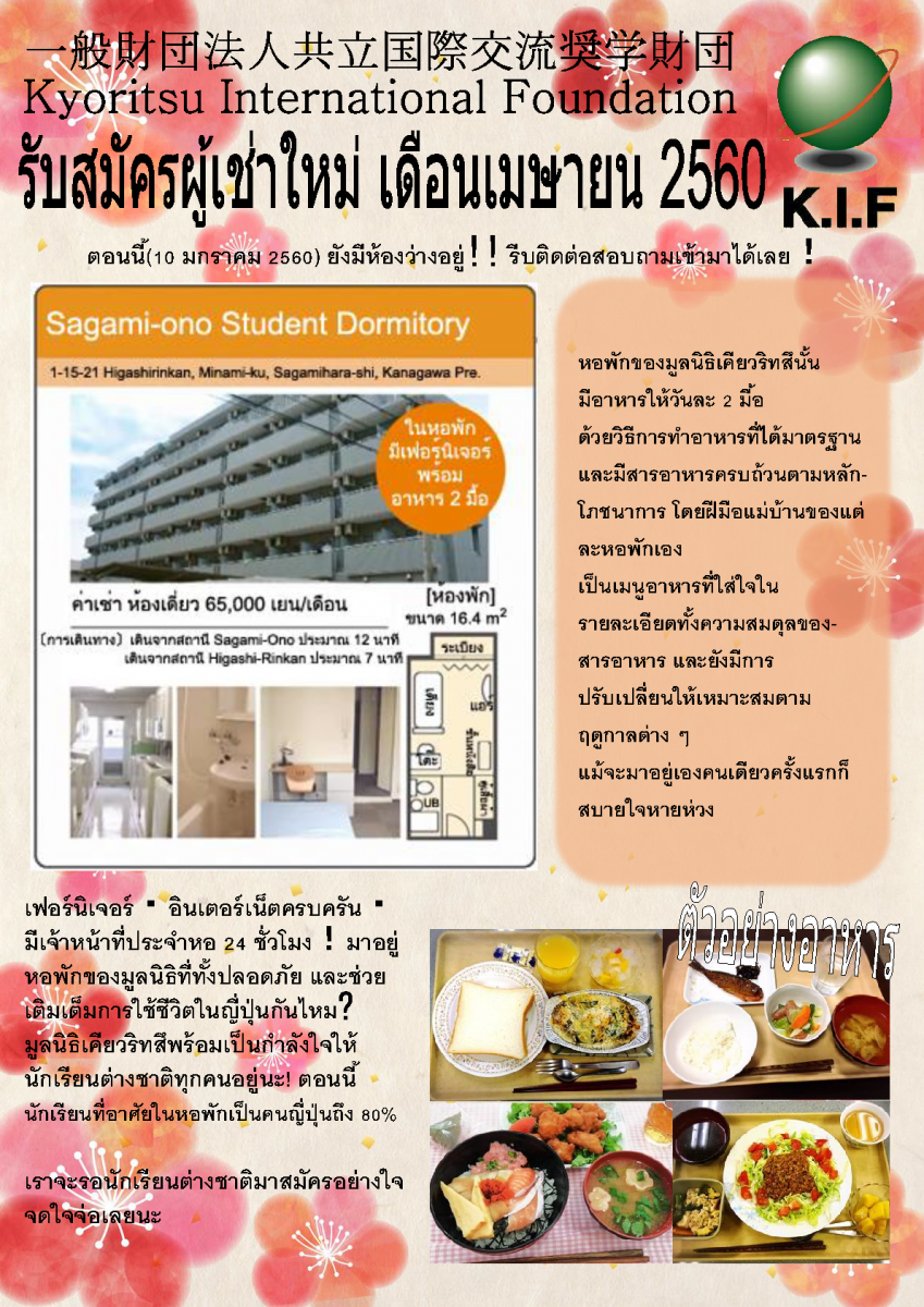 รับสมัครผู้เช่าใหม่ เดือนเมษายน 2560