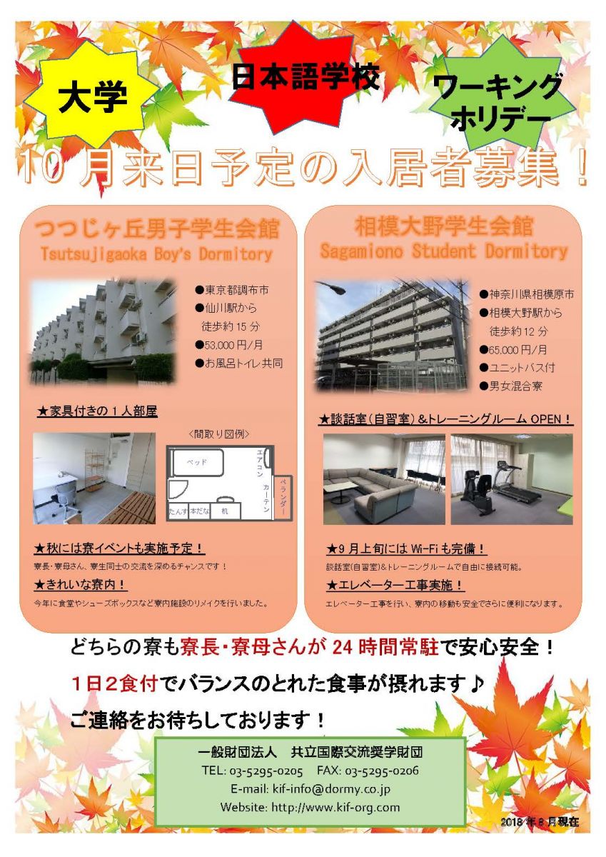 เปิดรับสมัครหอพักเดือนตุลาคม Sagamiono, Tsutsujigaoka